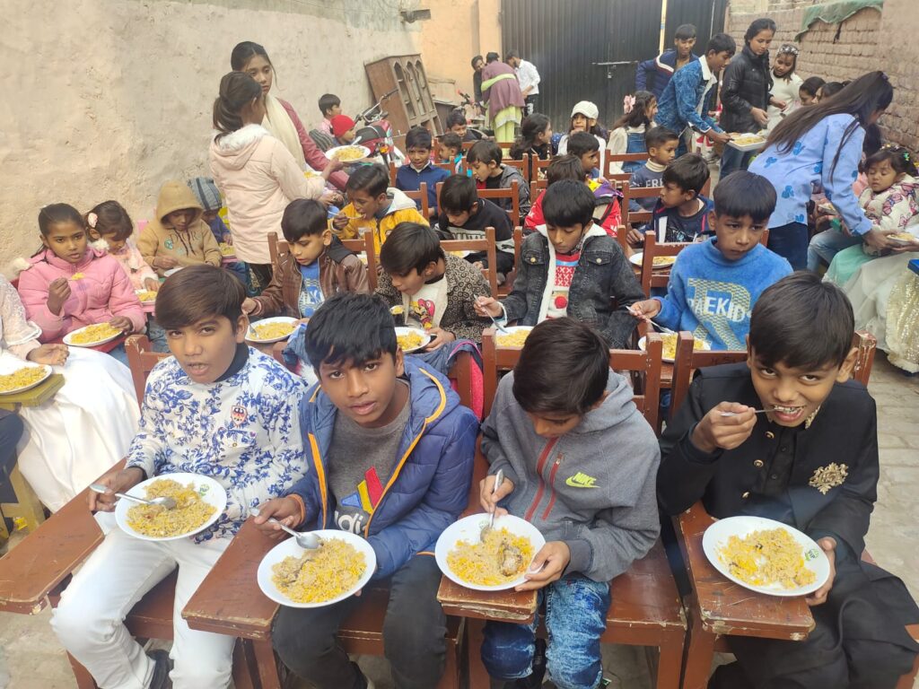 Orphans and children from struggling families study free of cost, and books and essential materials are provided to ensure that no child is left behind.